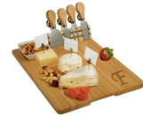 Personalized Monogrammed Engraved Hardwood Board for Cheese with 4 Cheese Knives, Cheese Markers & Ceramic Dish