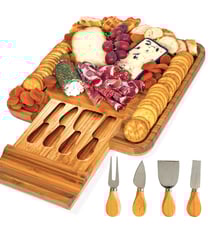 Wood Charcuterie Board with 4 Stainless Steel Cheese Knives