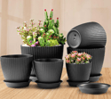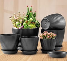 Set of 6 Small Black Planters with Saucers and Drainage Holes