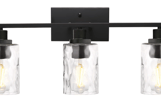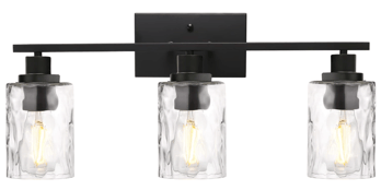 3-Light Bathroom Light Fixtures Black Finish with Hammered Glass