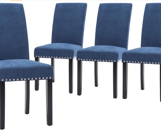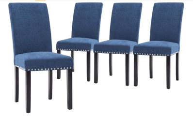 Upholstered Fabric Dining Chairs with Copper Nails, Set of 4 Kitchen Chairs , Blue